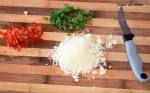 Am bătut spumă un albuș, am tocat foarte mărunt o bucățică de kapia și una de ceapă verde , am răzuit niște telemea, apoi le-am amestecat. Trebuie doar puțin din fiecare la un singur albuș. Apoi am legat compoziția cu puțină făină, am format trei clătite mici și drăguțe pe care le- am perpelit în tigaia în care topisem puțin unt.